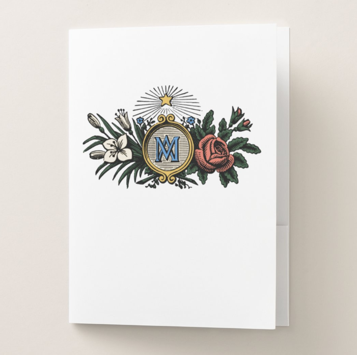 Marian Floral Crest Catholic Pocket Folder